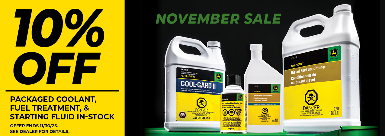 Save on packaged coolant, fuel treatment, & starting fluid just in time for the winter season. Offers end 11/30/25, some restrictions apply, see AgriVision Equipment for details.