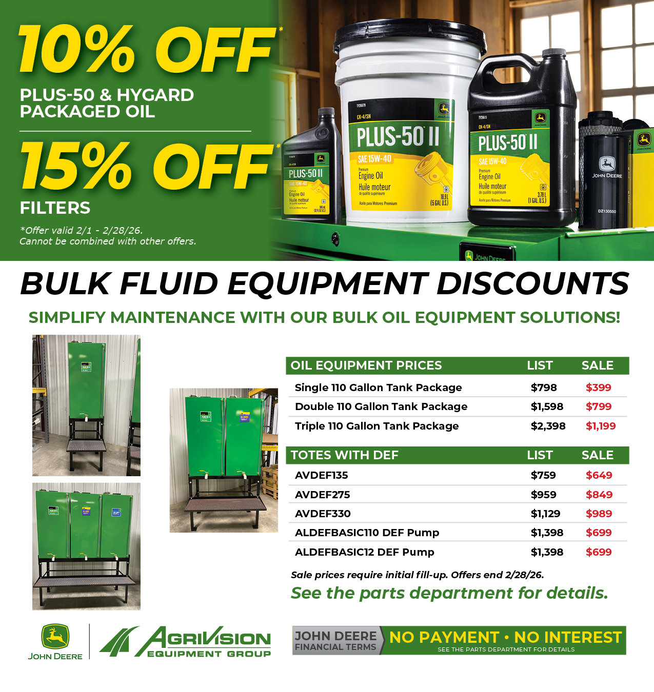 *Offer ends 2/28/26, restrictions apply. Tiered discounts is based on the number of part numbers on an invoice, minimum of $500. See the parts department for details.