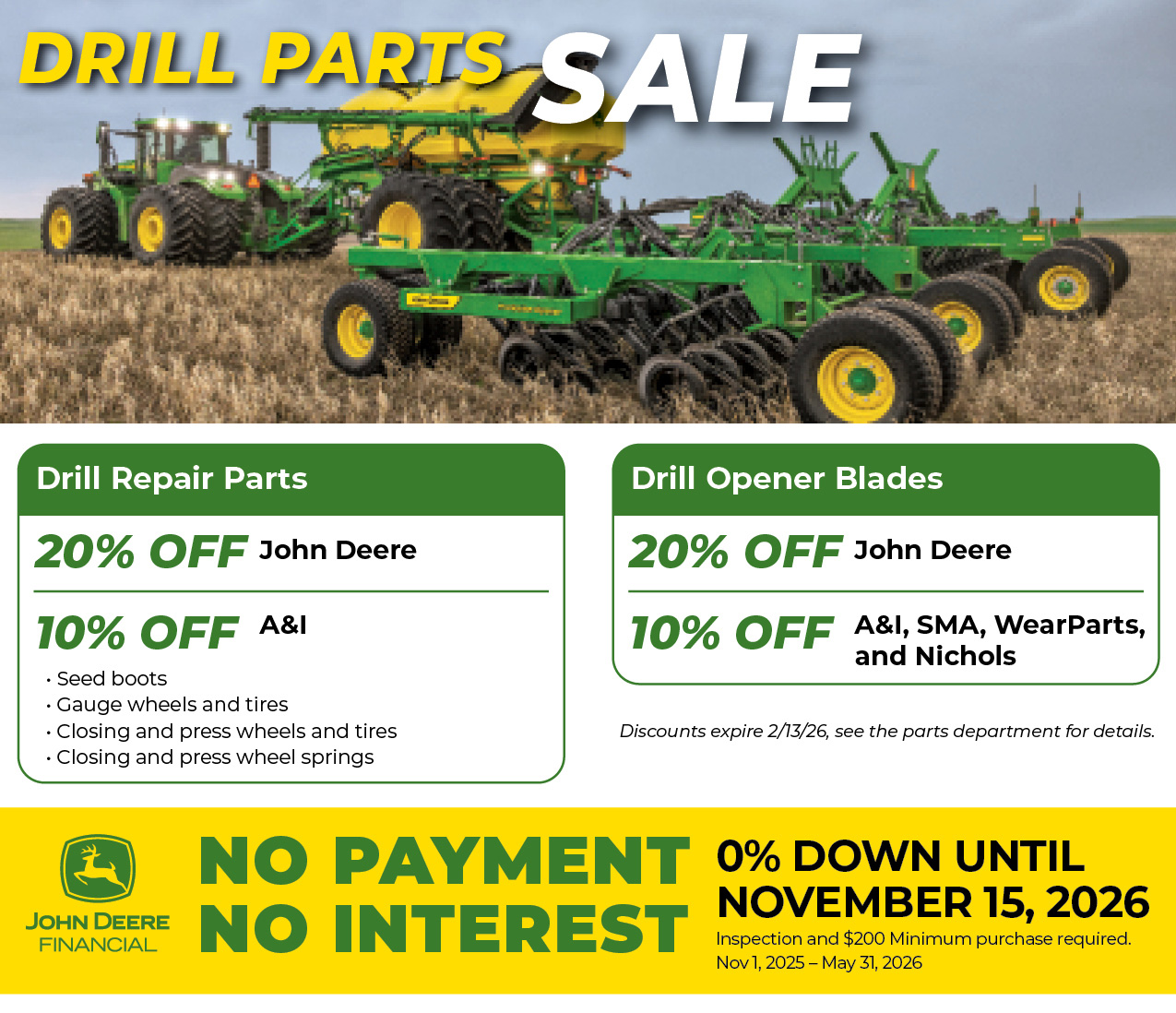 Offer ends 2/13/26, see the parts department for details.