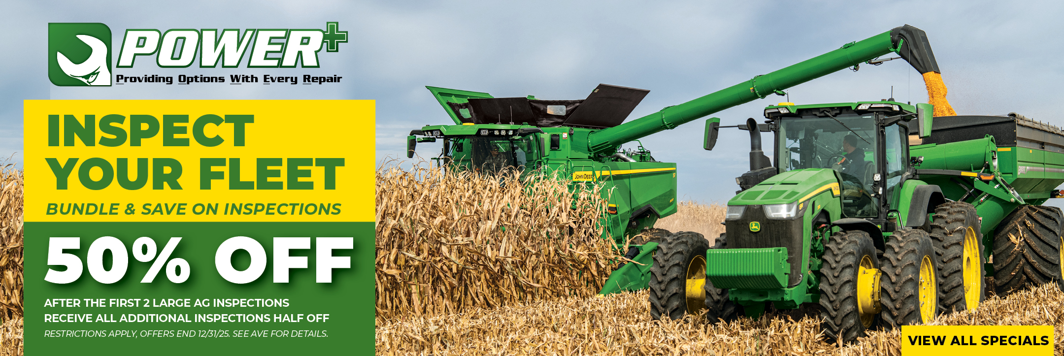 At AGRIVISION EQUIPMENT, we’re committed to providing solutions that best fit your operation’s needs. Our POWER Inspection Program—which stands for Providing Options With Every Repair—is a value-added service designed to minimize downtime and maximize productivity, especially when harvest windows are tight. With POWER, you have choices that work for you.